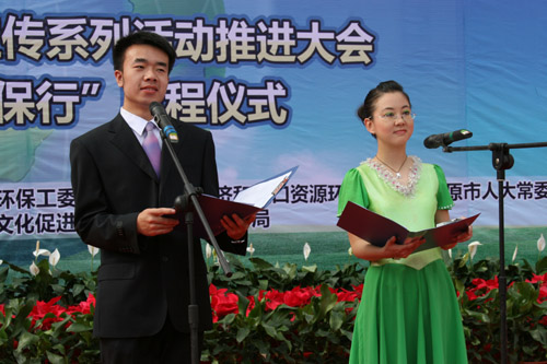 6月5日上午,山西省太原市南宫广场鲜花绽放、彩球飘扬。在洋溢着欢乐节日气氛的文艺演出序幕中,由中华环保基金会、山西省委宣传部、山西省人大城建环工委、山西省政协经济和人口资源环境委员会、山西省环保厅、山西太原市人大常委会、山西太原市人民政府共同主办, 中华环保基金会山西代表处、山西省环保宣教中心、山西省环境文化促进会、太原市环保局承办的山西省纪念“六五世界环境日”暨“山西绿色公益行动”启动大会在这里隆重举行,大会由山西省环保厅刘向东厅长主持。