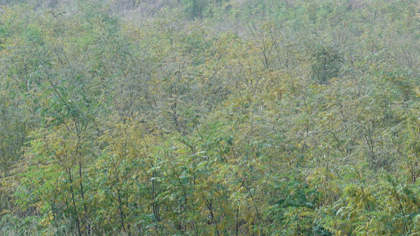 矸石山覆土后种植了三年的灌木生长情况