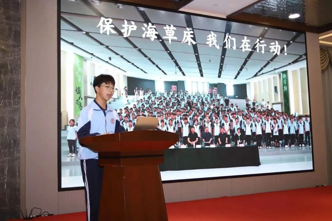随后,天津南开曹妃甸友谊学校学生代表宣读了《海草床保护倡议书》,呼吁公众节约用水、减少污染、积极行动争当环保宣传者,让“守护海草床”成为全民行动。
