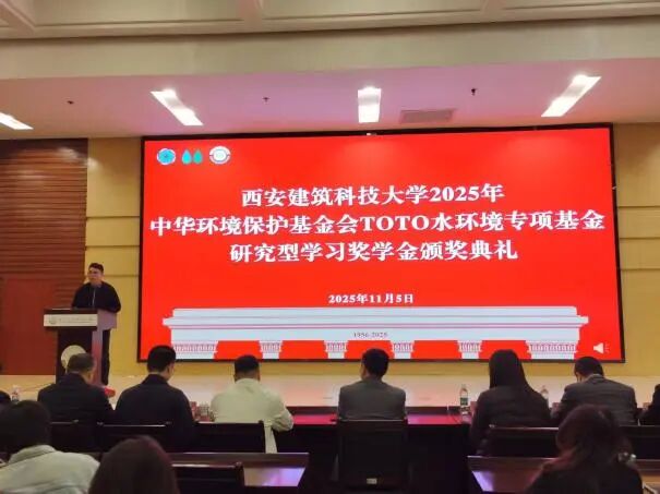 中华环境保护基金会TOTO水环境专项基金西安建筑科技大学研究型学习奖学金颁发仪式于11月5日在西安建筑科技大学举行。中华环境保护基金会代表,东陶(中国)有限公司张茉,西安建筑科技大学环境学院党委书记曹宏伟,教育基金会办公室副主任张广敏,创新创业学院副院长肖楠,建筑学院党委副书记、副院长贾雷刚以及环境学院党委副书记、副院长付胜伟出席了奖学金颁发仪式并为同学们颁发证书。建筑学院、环境学院部分师生参与了仪式。