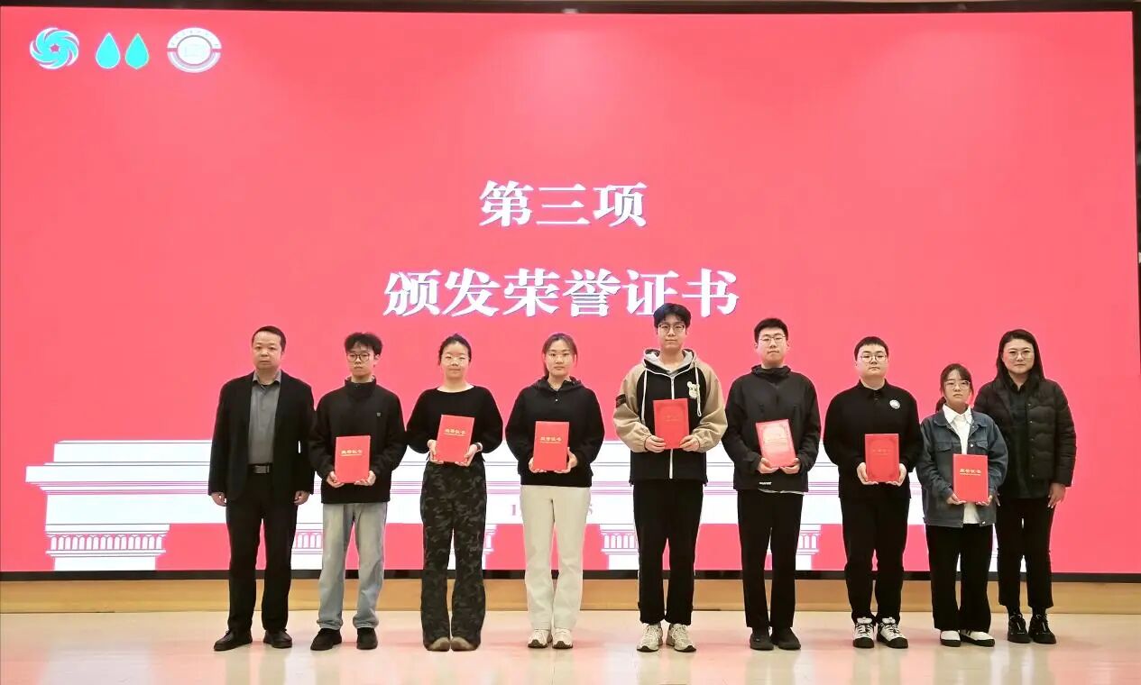 颁奖仪式上,中华环境保护基金会代表宣读了奖学金获得者名单,并代表基金会祝贺获奖团队。现场嘉宾和学院领导老师共同为获奖学生代表颁奖。