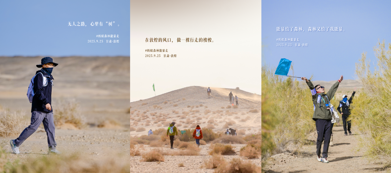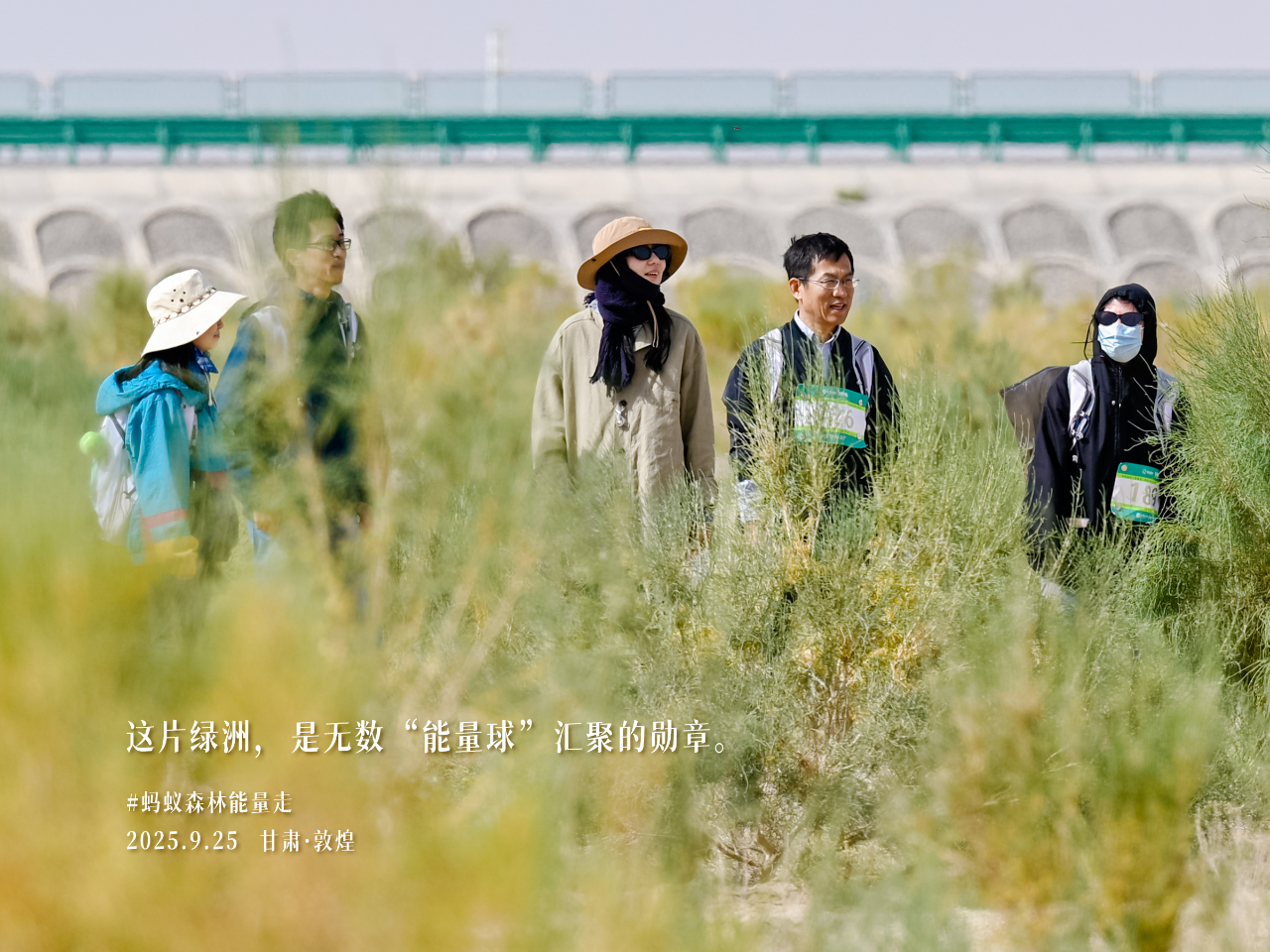 9月25日,由蚂蚁森林联合相关方举办的首次“能量走”徒步活动在甘肃敦煌成功举办。来自全国各地的蚂蚁森林用户代表走到已成为绿洲的蚂蚁森林102号林,亲身体验蚂蚁森林项目的良好成效。蚂蚁森林102号林由中华环境保护基金会接受蚂蚁集团捐赠于2019年开始种植并养护,总面积10000亩,梭梭树总数量120万株,是配合国家荒漠化防治工作的具体行动,对保护敦煌生态环境和莫高窟文化遗产具有积极的促进作用。文章转载自蚂蚁集团公众号。