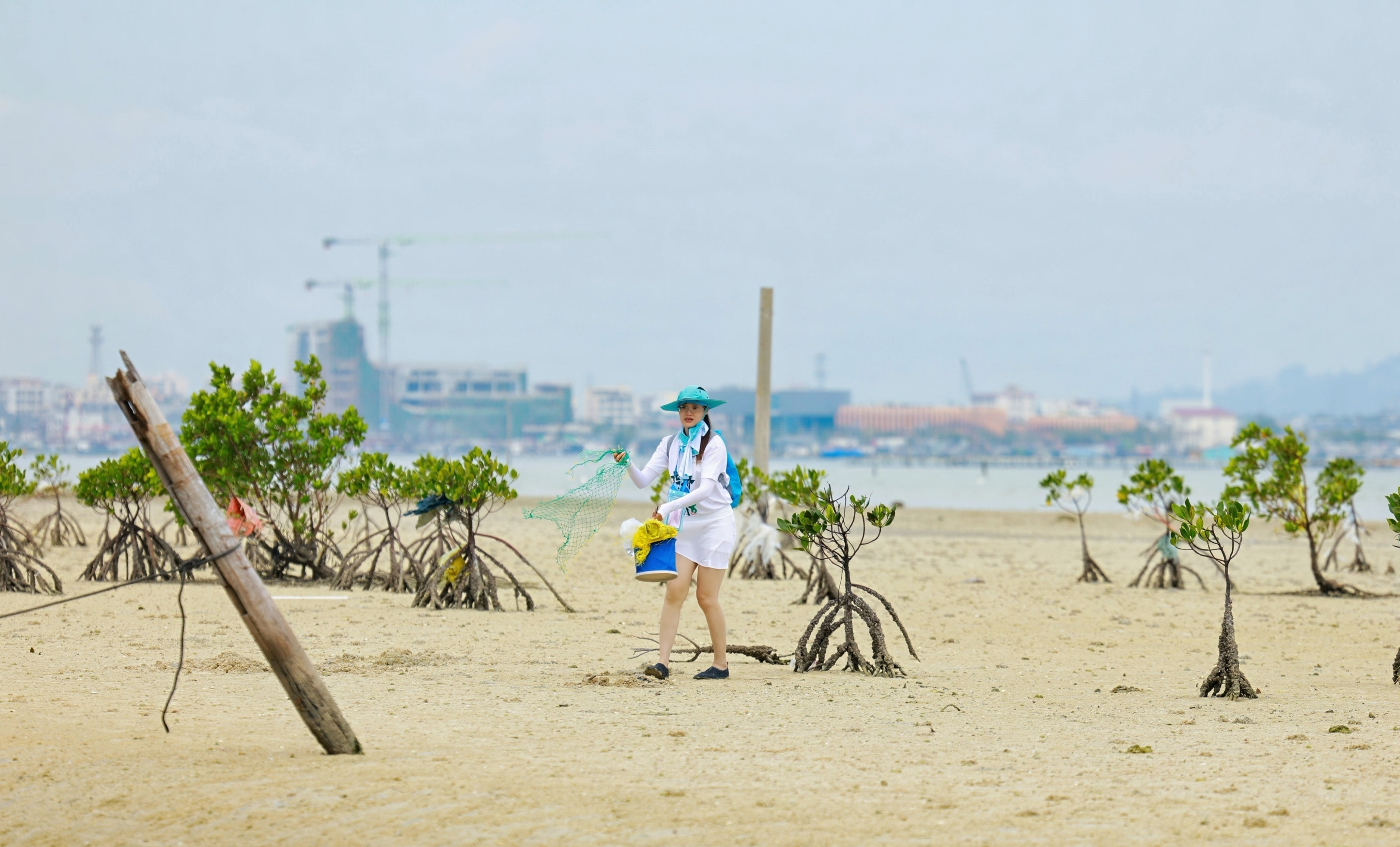 在实践过程中,志愿者们同步开展了净滩行动,沿近岸滩涂仔细捡拾塑料瓶、塑料袋、废弃渔网、泡沫等海洋垃圾。短短两小时内,共清理垃圾十余袋,有效减少了入海污染物对海草床及周边生态的潜在威胁。“每捡起一个塑料袋,就少一分对海洋生物的伤害。”一位志愿者边整理分类垃圾边说道,“守护蓝碳,不仅要种海草,也要清源头。”