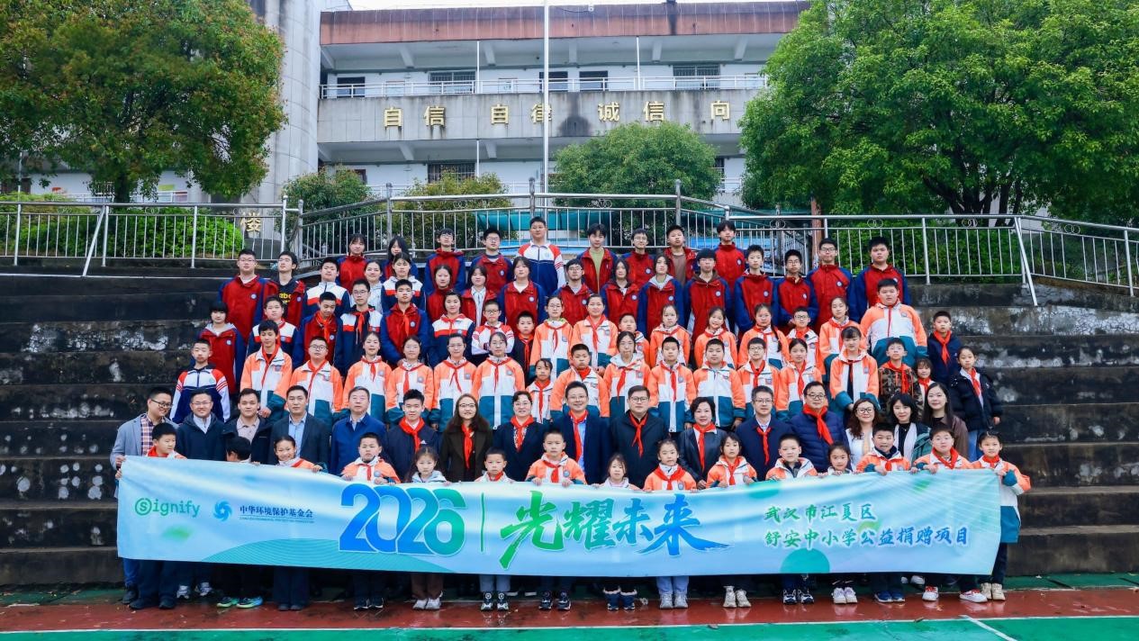 2026年3月30日上午,一场以“光”为名的温暖公益行动在项英的故乡—武汉市江夏区革命老区舒安街道落地。由中华环境保护基金会与昕诺飞基金会共同发起的“光耀未来”公益项目捐赠仪式在舒安中学举行。该项目旨在通过捐赠安装专业绿色照明产品、改善校园光环境,切实守护青少年视力健康,为乡村教育注入绿色、可持续的光明力量。