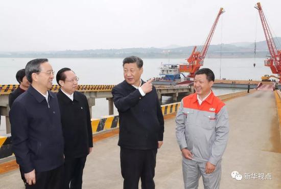 2018年4月24日,习近平总书记在湖北宜昌长江岸边的兴发集团新材料产业园考察时说,我强调长江经济带建设要共抓大保护、不搞大开发,不是说不要大的发展,而是首先立个规矩,把长江生态修复放在首位,保护好中华民族的母亲河,不能搞破坏性开发。 新华社记者鞠鹏 摄